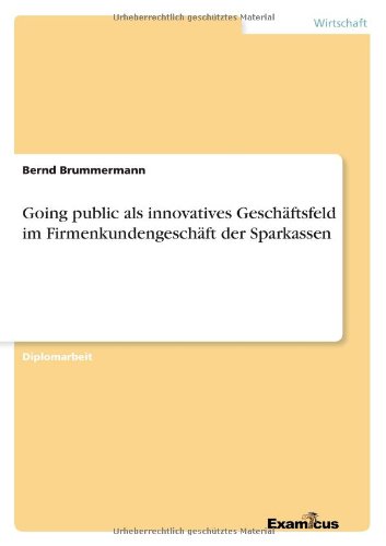 Read PDF Going public als innovatives Geschäftsfeld im Firmenkundengeschäft der Sparkassen Download, PDF ..., Ebook PDF OnlineGoing public als innovatives Geschäftsfeld im Firmenkundengeschäft der Sparkassen , Free Download Going public als innovatives Geschäftsfeld im Firmenkundengeschäft der Sparkassen PDF Kindle Ebooks PDF Going public als innovatives Geschäftsfeld im Firmenkundengeschäft der Sparkassen ePub, PDF ...
